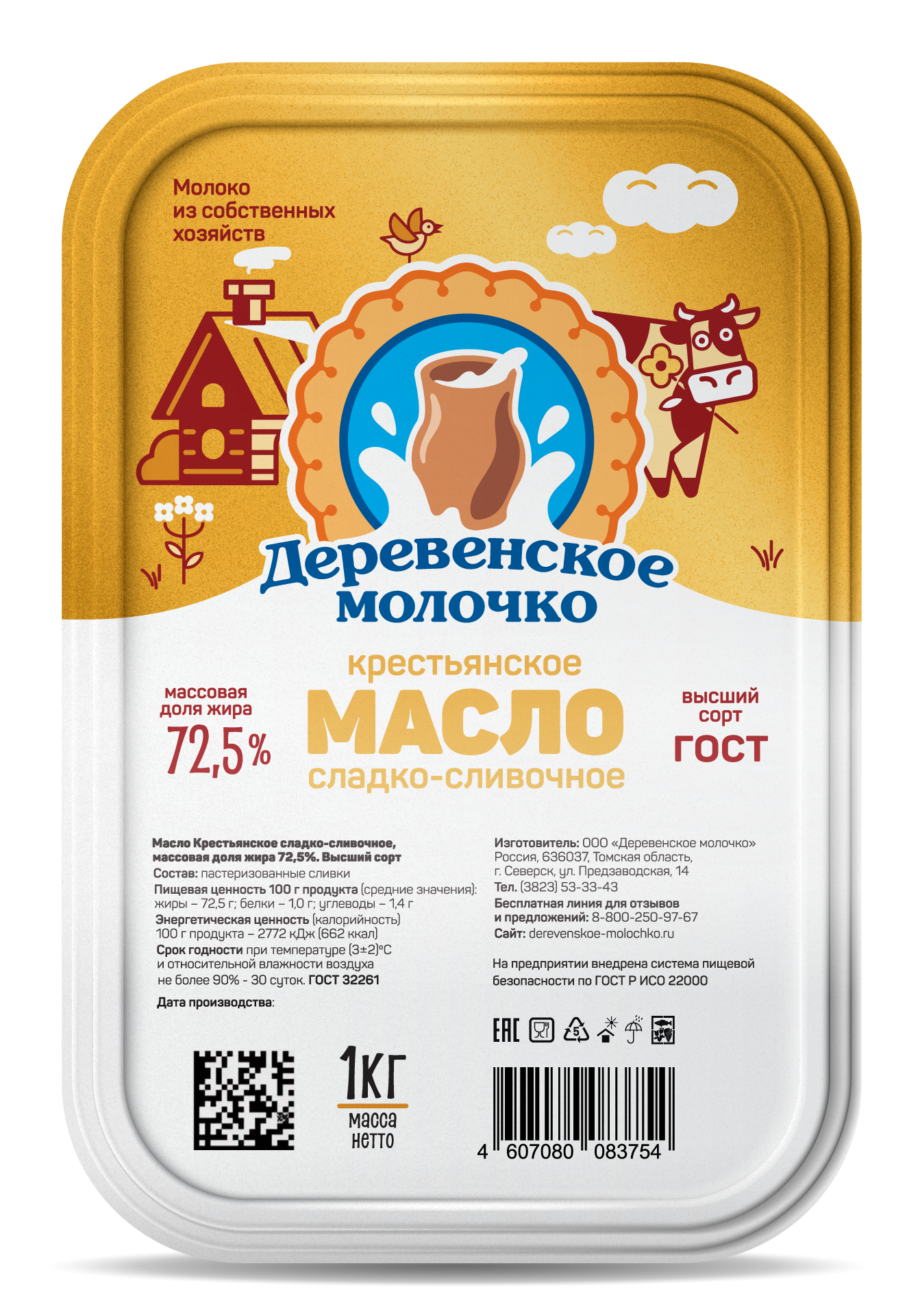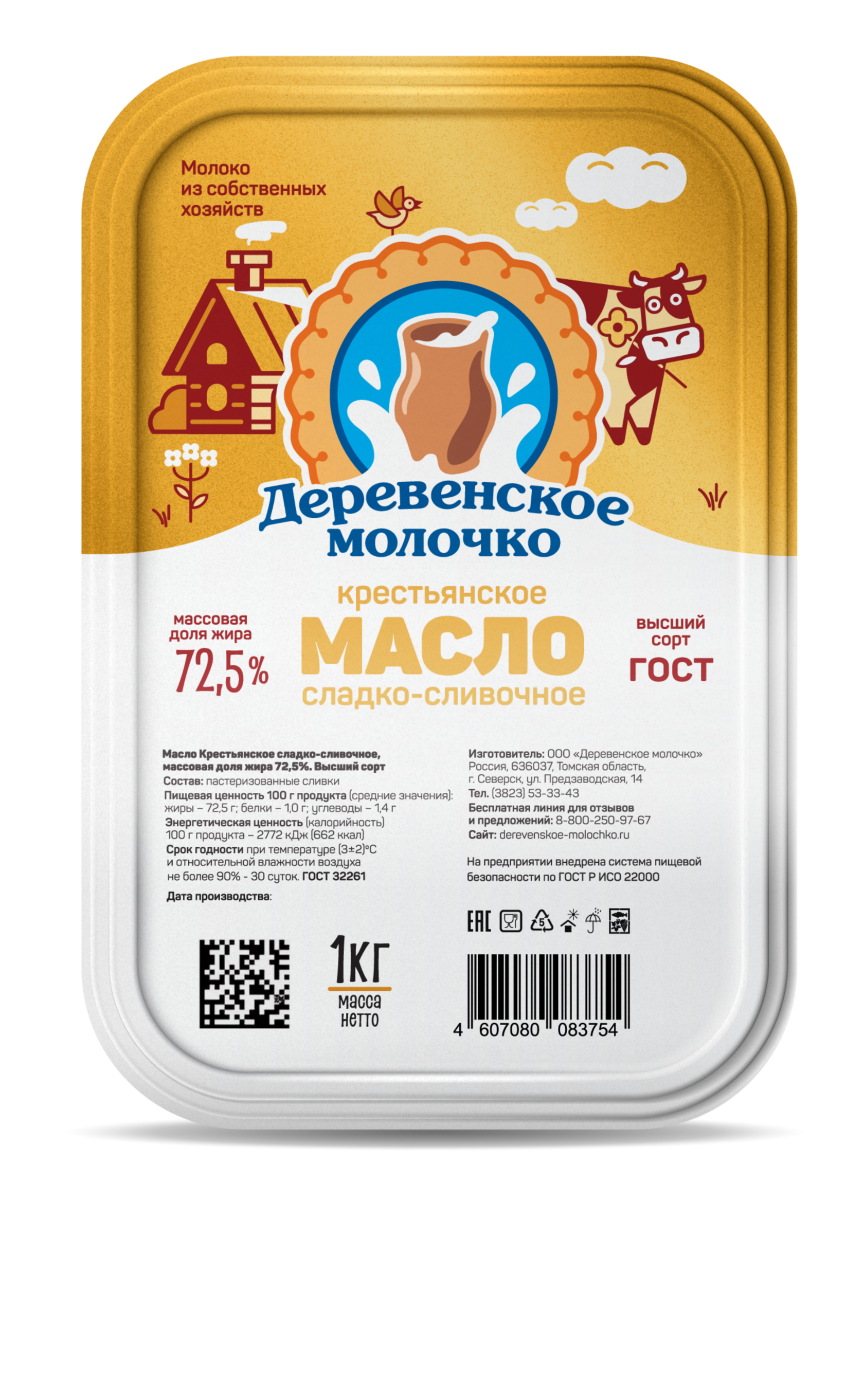 Масло очень питательный и важный для здоровья. При производстве масла «Деревенское молочко» используется особая технология нагревания сливок, благодаря чему образуются богатый аромат и нежнейший сливочный вкус. В составе сладко – сливочного «Крестьянского» масла только пастеризованные сливки.